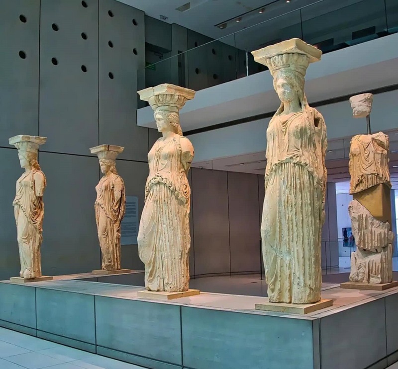 Admire the iconic Caryatids, the stunning maiden columns that once adorned the Erechtheion, embodying both grace and strength in their elegant form.
