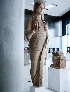 Discover Archaic statues and offerings, like the colorful Korai, showcasing the art and style of early Greek culture in vivid, striking detail.