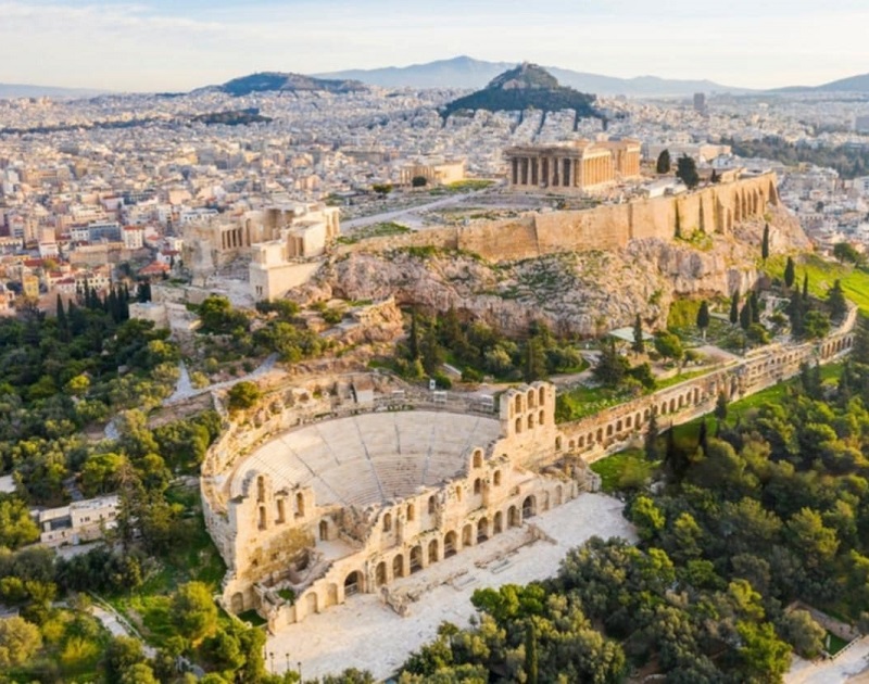 Iconic citadel with the Parthenon and other classical monuments, symbolizing ancient Greece.